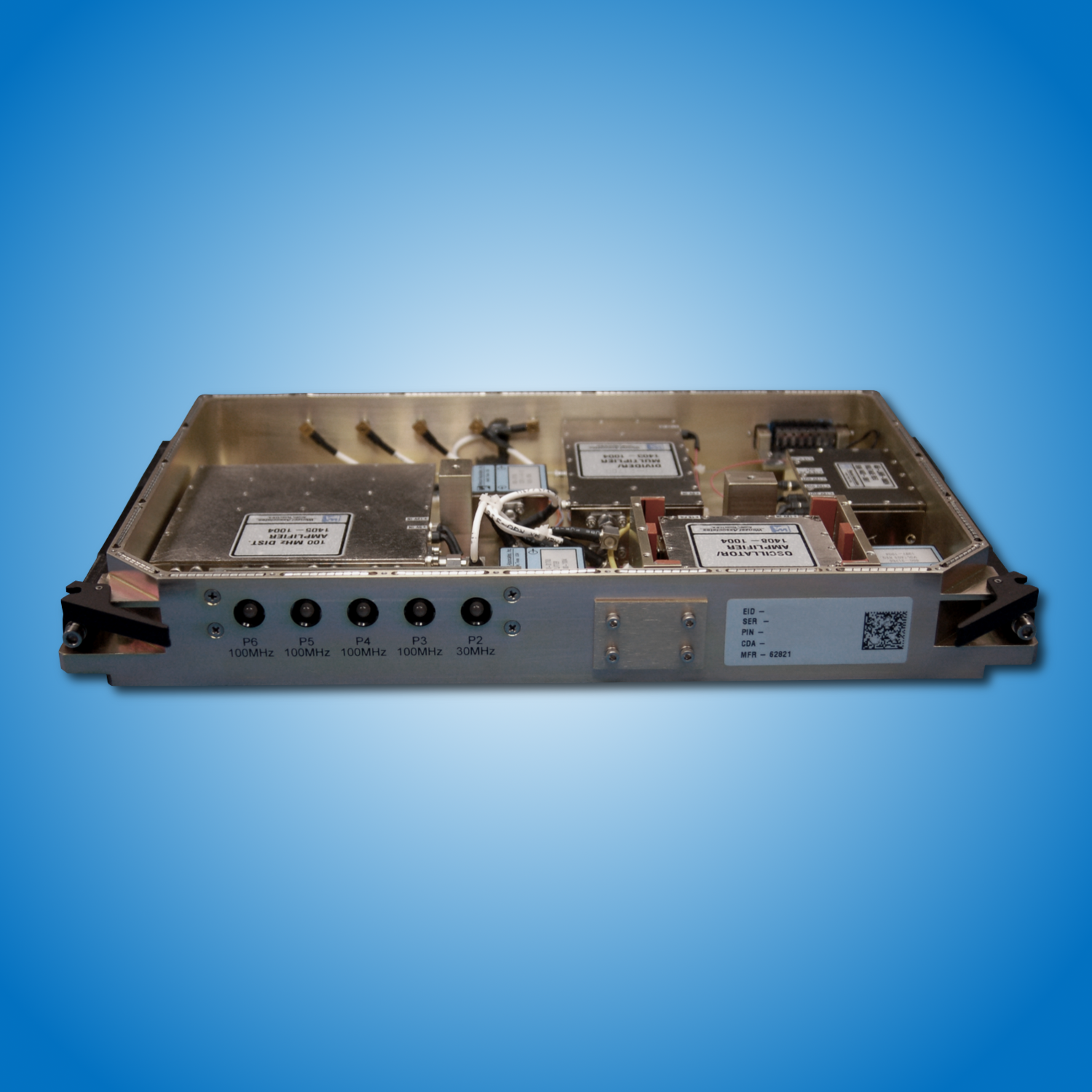 Developed to meet VITA 67 technology standards, the 3U OpenVPX is SOSA aligned and environmentally sealed for exceptional phase noise performance. The 3U OpenVPX features low-g sensitivity and has a fixed frequency range of 100 MHz to 18 GHz.