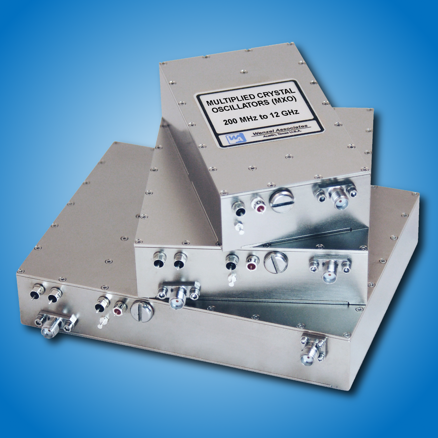 The typical Multiplied Crystal Oscillator (MXO) is comprised of Quantic Wenzel’s industry leading VHF Ultra Low Noise OCXO integrated with several low noise multiplier stages. The MXO is easily customized to any fixed frequency between 200 MHz and 12 GHz. Options such as phase locking (PLL) can also be specified on some models to phase lock to an external reference such as a rubidium, cesium, GPS or OCXO standard. An internal HF reference OCXO can be specified as well. The Golden Multiplied Crystal Oscillator Series (GMXO) offers the same options as the MXO Series oscillators, but provides superior phase noise performance. Our latest ultra-low noise oscillator technology and special multiplier stages are combined in the Golden Series products to allow a phase noise floor improvement of up to 10 dB lower than the already low MXO Series phase noise performance. Excellent option when stability and the lowest possible phase noise performance in an OCXO based product is a must.