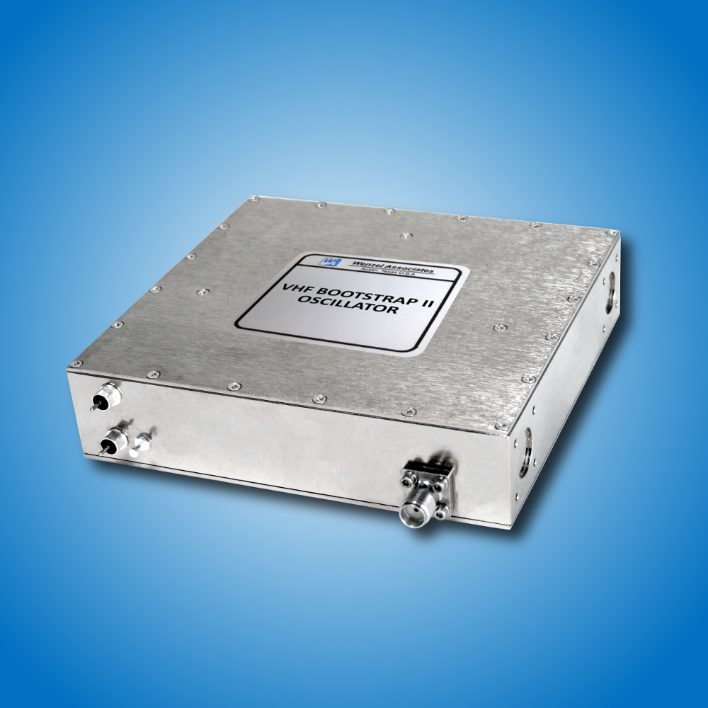 At VHF frequencies, the Bootstrap oscillator provides unprecedented low-g sensitivity to 2e-11/g. The standard Bootstrap oscillator consists of two rugged OCXOs of the same frequency, which can be any fixed frequency between 25 MHz and 256 MHz, and all necessary components to phase lock the two oscillators together. Special compensation techniques are used to minimize vibration induced phase noise including positioning the two oscillators mechanically in two axes to offset vibration sensitivity as well as adjusting the electrical tuning of both oscillators with a properly scaled compensation voltage. The Bootstrap oscillator assembly is an ideal solution for the most demanding airborne, mobile and shipboard applications requiring greatly improved dynamic phase noise performance with effective acceleration sensitivity performance approaching 2E-11/g per axis. Effective acceleration sensitivity to 2E-12/g can be realized with the addition of an external vibration isolation system, assuming a typical natural mount resonant frequency around ~30 Hz. The assembly is housed in a 3.75” x 3.5” x 0.9” machined aluminum case. An internal voltage regulator is provided for excellent power supply line rejection. Please consult the factory if you need any specifications to be modified to better suit your application.